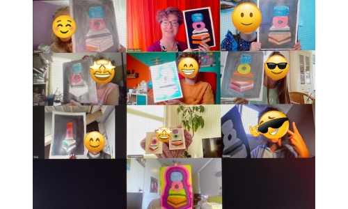 De taal blijft levendig terwijl ze tekenen, lachen en kletsen.